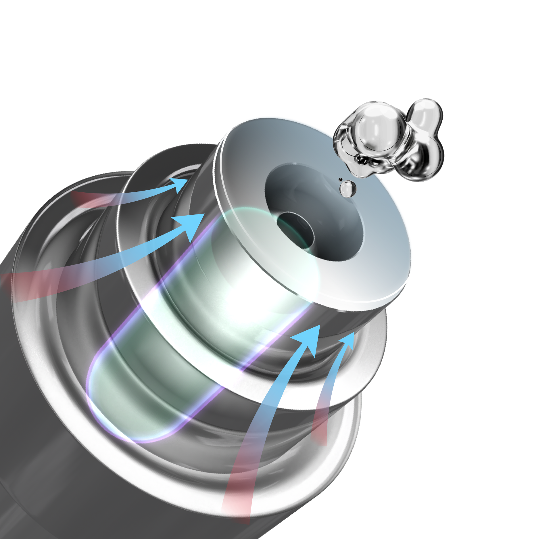 Cuando el ánodo gira, el rodamiento de metal líquido gira prácticamente sin fricción, lo que resulta en menos vibración, ruido y calor, y un bajo desgaste del sistema, prolongando así la vida útil del tubo.