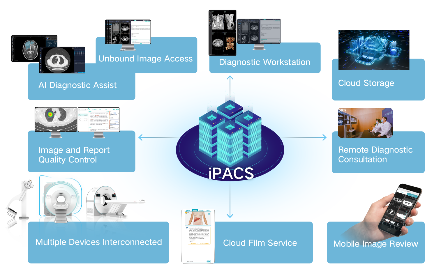 Integración de diagnóstico profesional, diagnóstico con IA y control de calidad, interconexión de dispositivos, colaboración en imágenes móviles y atención al paciente