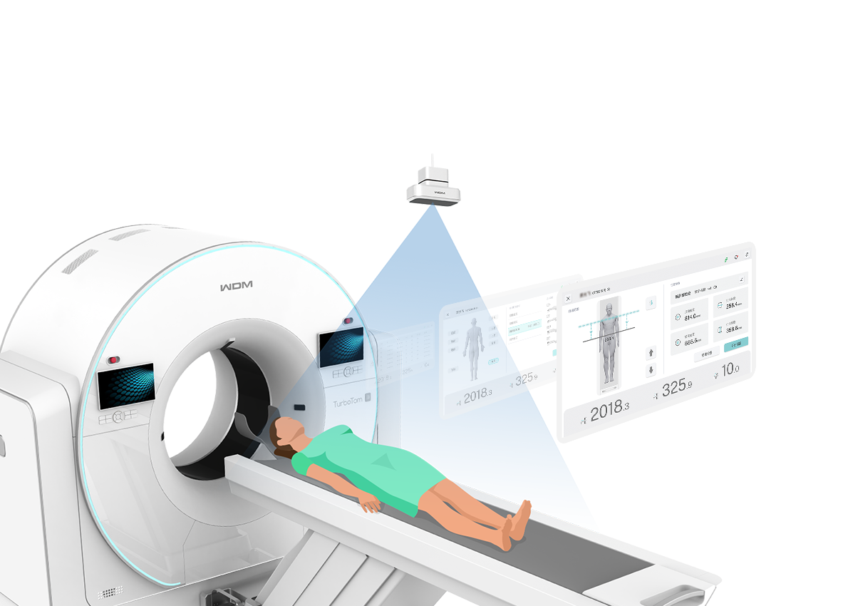 Al reconocer de forma automática y precisa la posición del paciente para generar una imagen de exploración, el sistema logra un escaneo preciso del posicionamiento en la sala de control.